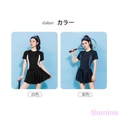 ワンピース 水着 レディース 体型カバー フィットネス ワンピース オールインワン 韓国 大きいサイズ 2colors 半袖 ピンク ブラック グレー 大人 ママ水着 かわ