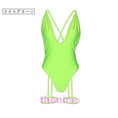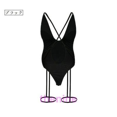 水着 ワンピース スイムウェア レディース レオタード風 深Vネック ハイレグ 紐 女性下着 コスチューム