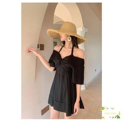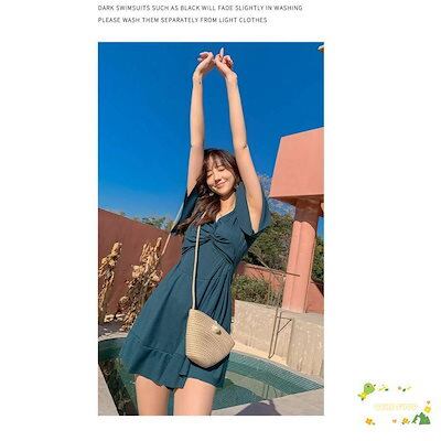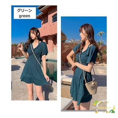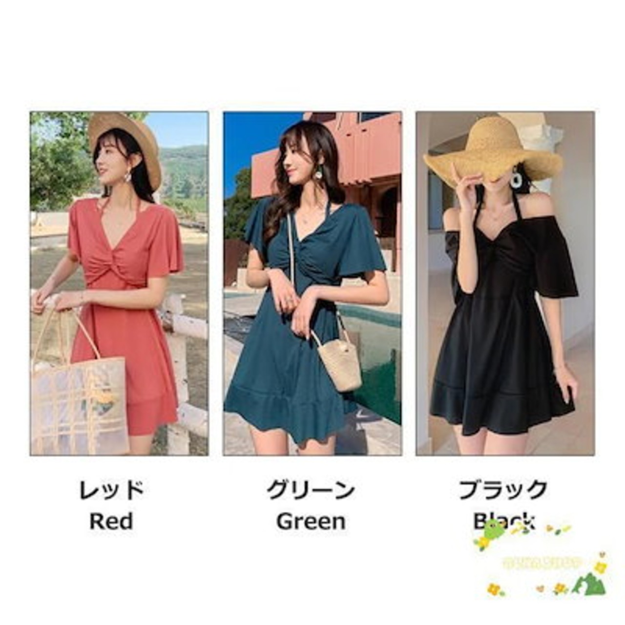 水着 レディース ワンピース ワンピースタイプ 2way 体型カバー 着痩せ 肩出し フリル 韓国風 20代 30代 40代 ママ 無地 可愛い おしゃれ
