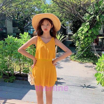 水着 レディース ワンピース 夏 小胸 日焼け防止 パッド付き 体型カバー UVカット ママ水着 海水浴 潜水 韓国風 可愛い プール 学生