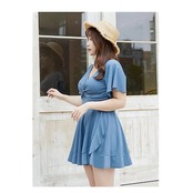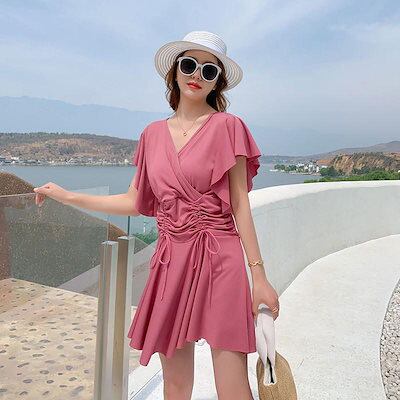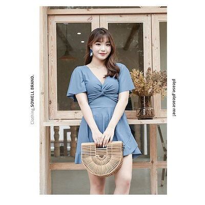水着 レディース ワンピース水着 ハイウエスト オールインワン 胸パッド付 ビーチウェア フリル 大きいサイズ ぽっちゃり 着痩せ プール 高級感 夏