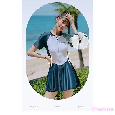 水着 レディース ワンピース オールインワン フィットネス 韓国 2colors 見せパン付 半袖 ブラック ピンク ブルー 青緑 大人 ママ水着 かわいい 盛れる おしゃ