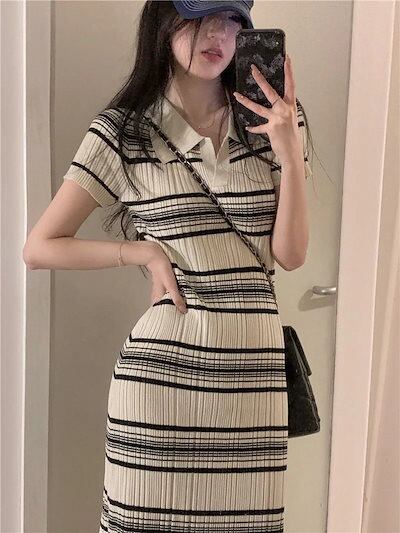 レトロ ニットワンピース レディース 夏 スリミング ワンピース セミロング ワンピース カップ 付きインナー