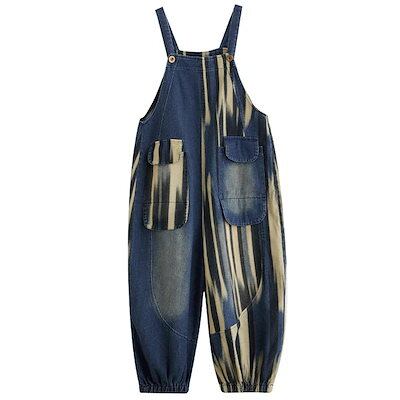 2024春 新作 コントラストカラー ポケット 束口 デニムサロペット オーバーオール レディース オールインワンパンツ