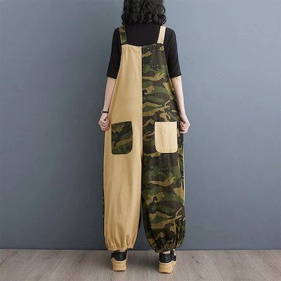 2024春 新作 コントラストカラー ゆったり 大きめ デニムサロペット レディース おしゃれ オールインワンパンツ