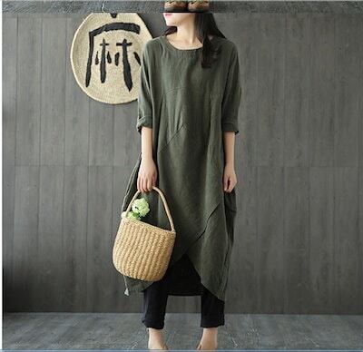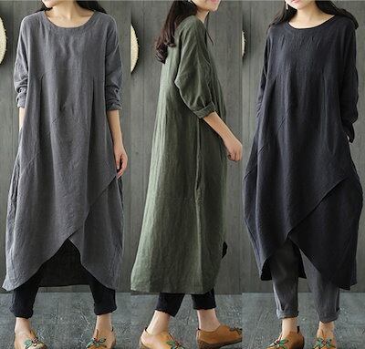 【2枚購入で 2oo円OFF! 】ワンピース レディース 秋冬 ゆったり 大きいサイズ カジュアル ロングワンピース 大きいサイズ 着やせ