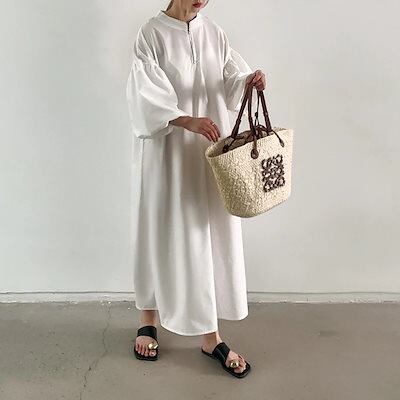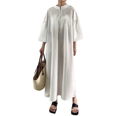 【2枚購入で 2oo円OFF! 】春のワンピース シンプル ランタン袖 ワンピース 気質高級感 カジュアル ロングワンピース 着痩せ 大きいサイズ ワンピース