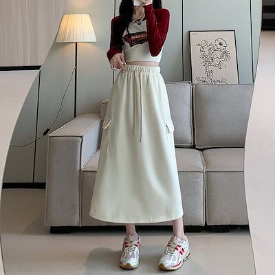 【2枚購入で 2oo円OFF! 】2024春夏新作 着痩せ スカート ロングスカート ハイウエスト Aライン スタイルアップ カジュアル 運動 セミロング スリット タイトスカート