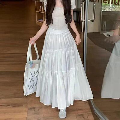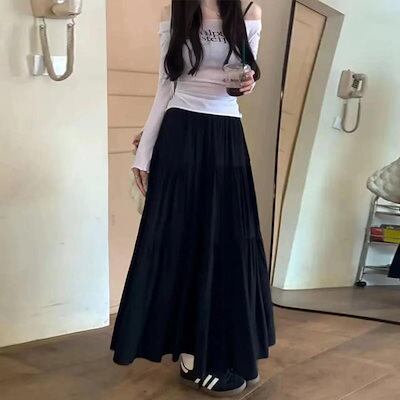 【2枚購入で 2oo円OFF! 】2024春新作 韓国ファッション ゆったり スカート 着痩せ ドレープ感 ハイウエスト カジュアル セミロング ワンピース