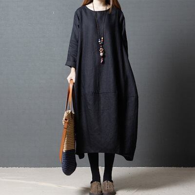 【2枚購入で 2oo円OFF! 】長袖 綿麻 レディース 2024春夏新作 カジュアル 丸ネック ゆったり ワンピース ワンピース体型カバー夏物ロングワンピースシンプルおしゃれ