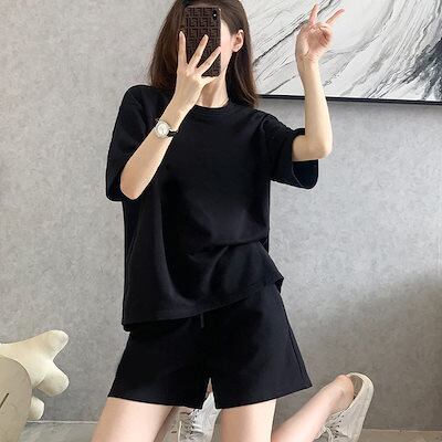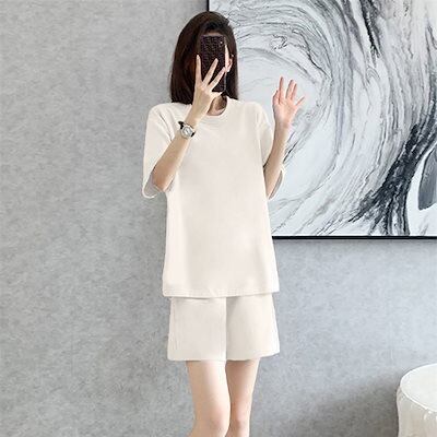 大きめサイズ 100KG 2024夏 カジュアル 運動 ショットパンツ 二点セット夏 ゆったり 着痩せ セットアップ レディース 夏服 半袖 ルームウェア 韓国ファッション ホームウェア