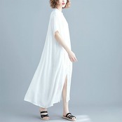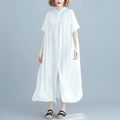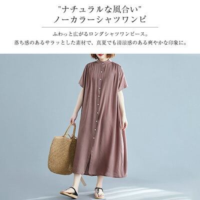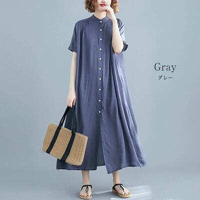 ワンピース 半袖 レディース 夏 ロング きれいめ ロングワンピース シャツワンピース わんぴ ロングスカート フレアワンピース ロング丈 体型カバー 大きいサイズ スタンドカラー ロングシャツ