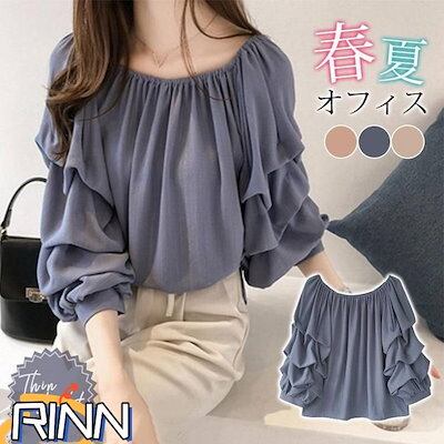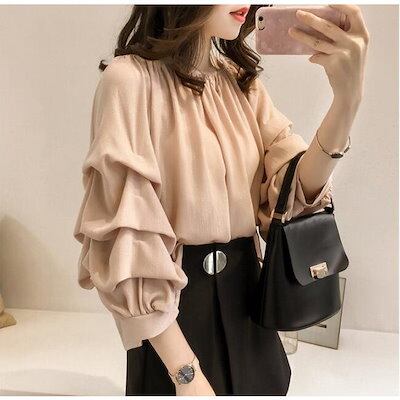 【2枚購入で299.円OFF】シフォンブラウス 七分袖 レディース フォーマル クルーネック パフスリーブ 大きいサイズ 長袖 入学式 オケージョン 上品 バルーン袖 フリル / バルーンスリ
