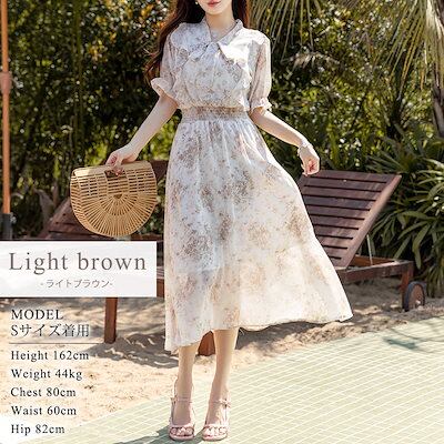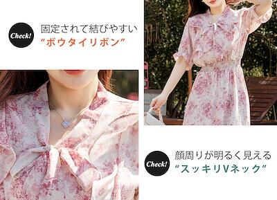 リゾートワンピース レディース サマードレス ロング マキシ丈ワンピース シフォン 春夏 きれいめ かわいい おしゃれ Aライン Vネック 半袖 花柄 ボウタイワンピース 薄手 シフォン シャーリング