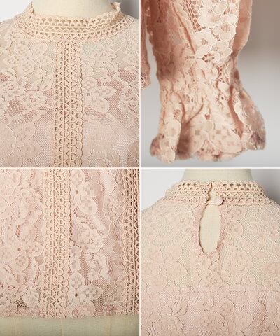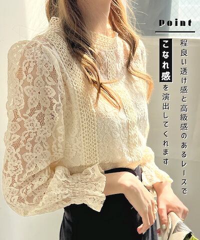 レース ブラウス 白 長袖 結婚式 二次会 オフィスカジュアル 半袖 春 入学式 卒業式 総レース フォーマル オケージョン シースルー シャツ ハイネック YP/