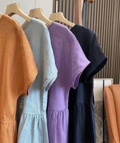 2024年春新作 【本日限定】ゆったり 揺れるトレンド ワンピース 綿麻 ロングワンピース 秋 半袖 無地 ゆったり 韓国ファッション シンプル ナチュラル 上品 大人 通勤 OL 旅 20