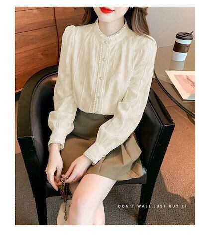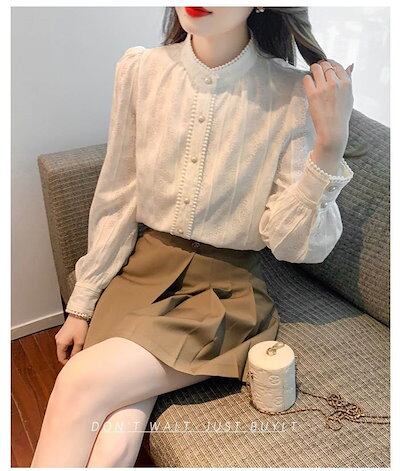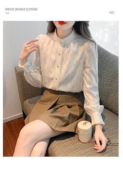 【48時間タイムセール】レースブラウス レディース 長袖 シャツ スタンドカラー 総レース シャツブラウス スーツインナー トップス フォーマル オフィス ビジネス 立ち襟 通勤 カジュアル OL