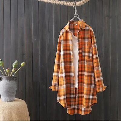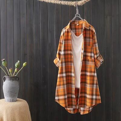 ロングシャツ 長袖 レディース タータンチェック シャツ カーディガン ブラウス 羽織り 秋 春 トップス チェック柄 大きいサイズ ゆったり 体型カバー カジュアル ナチュラル 通勤 大人可愛い ベ