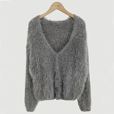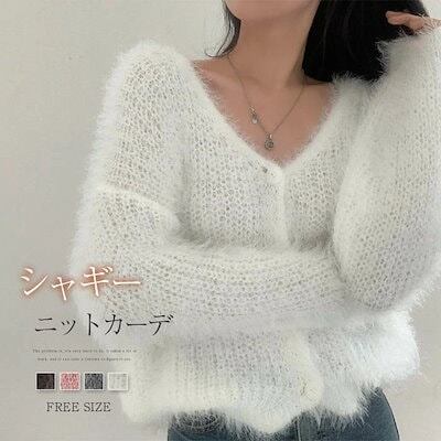 シャギーニットカーディガン レディース ニット カーディガン vネック 長袖 もこもこ カーデ ふわふわ セーター 春秋 ゆったり 前開き アウター フェザートップス 羽織り 暖か 可愛い キレイめ