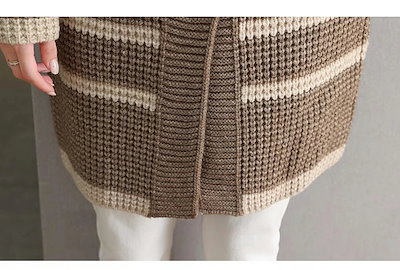 カーディガン ニット レディース 秋冬 フード付き ボーダー柄 ロング丈カーディガン トップス 前開き 長袖 カーデ ニットカーディガン 羽織 体型カバー 羽織り 上着 シンプル 無地 重ね着 ゆった