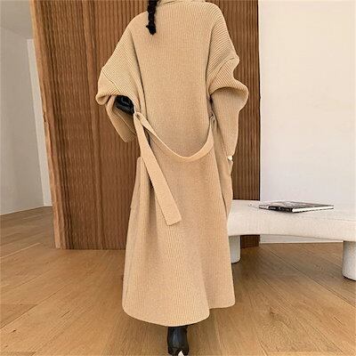 ロングカーディガン ニット チェスターコート レディース ニットカーディガン アウター 大きいサイズ ゆったり 前開き ベルト付き トップス ゆるカーデ 羽織 大人 暖か 厚手 通勤 キレイめ ゆった