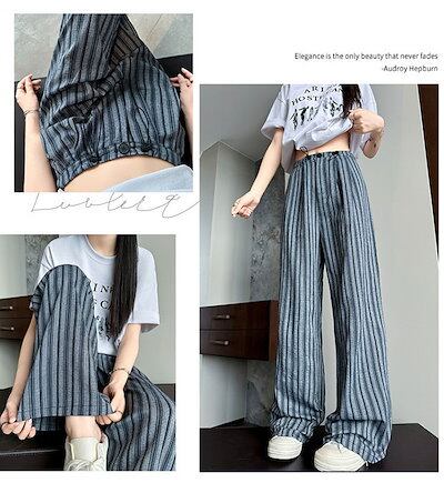 ワイドパンツ レディース ストライプパンツ ロングパンツ ストライプ ズボン 春秋 ストレートパンツ ロング丈 ワイド パンツ 体型カバー ゆったり カジュアル きれいめ 着痩せ ゆる 可愛い 秋 春