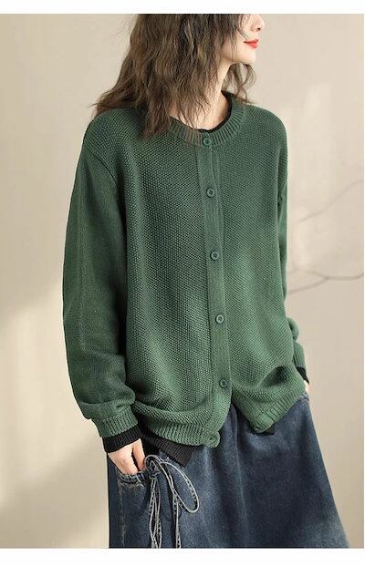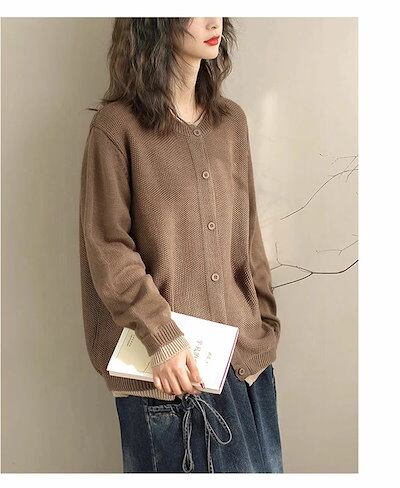 ニット カーディガン レディース 長袖 配色 ニットカーディガン ラウンドカラー カーデ 無地 トップス 羽織り 春秋 ゆったり ニットカーデ 着?せ 柔らか 前開き ボタン 体型カバー 大人 可愛