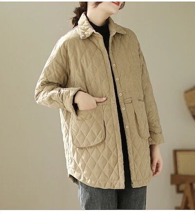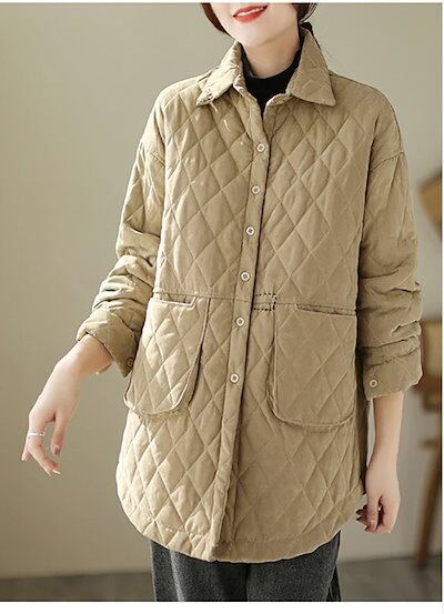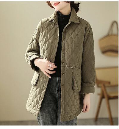キルティングジャケット レディース 秋冬 ミモレ丈 中綿 中綿コート 長袖 前開き ジャケット アウター 羽織り 大きいサイズ カジュアル風 あったか 暖かい 防寒 軽い ゆったり ふんわり きれいめ