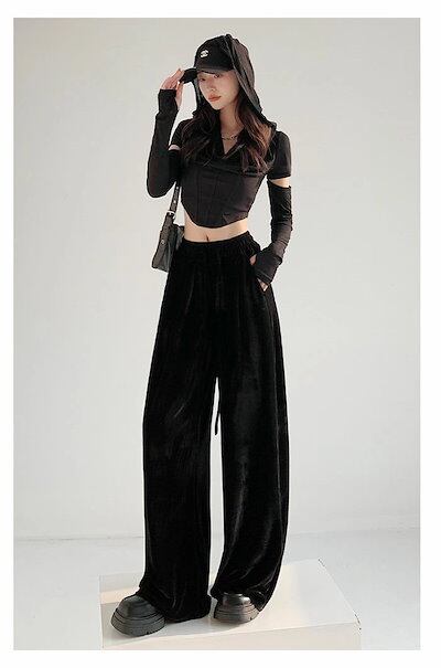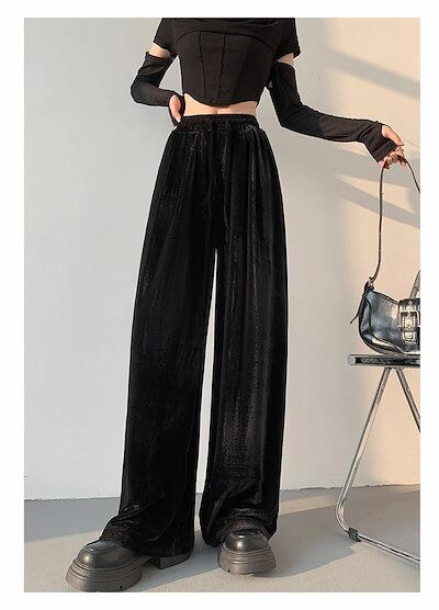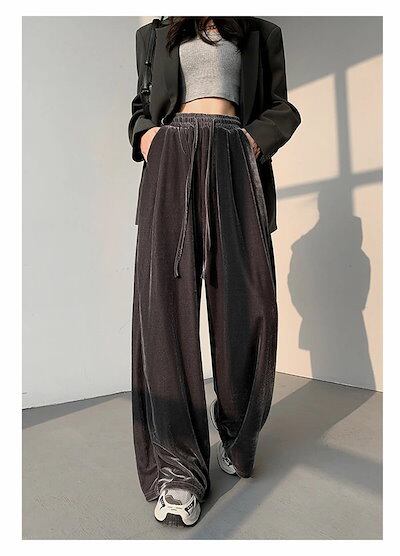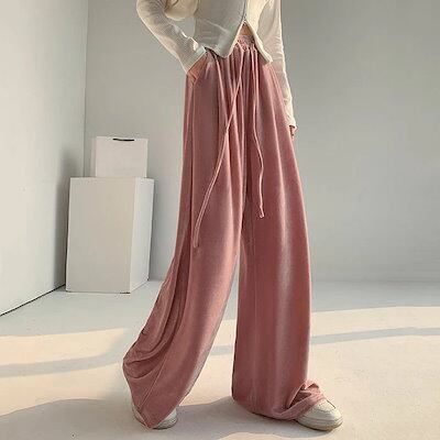 ベロアパンツ レディース ワイドパンツ 春秋 ワイド パンツ 落ち感 光沢感 ロングパンツ ウエストゴム 無地 大きいサイズ ゆったり リラックス 着心地よい カジュアル オシャレ シンプル ファッシ