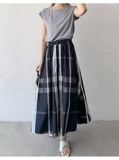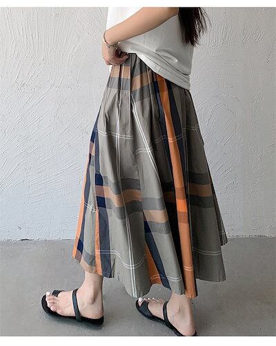 スカート チェック柄 フレアスカート レディース ボトムス ロング マキシスカート チェックスカート 大きいサイズ ハイウエスト Aライン お洒落 ゆったり カジュアル 大人可愛い ブラック 黒 ベー