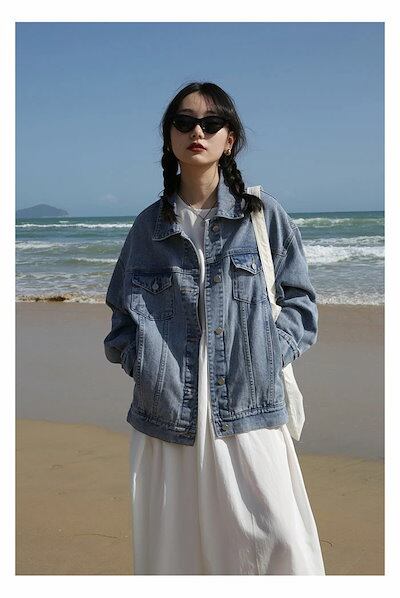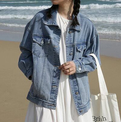 オーバーサイズ アウター デニムジャケット レディース デニム トップス ジャケット ブルゾン アウター 大きいサイズ 長袖 羽織 大人 ゆったり ジーンズ 無地 体型カバー 秋 春 きれいめ モード