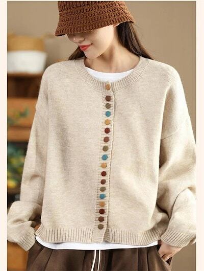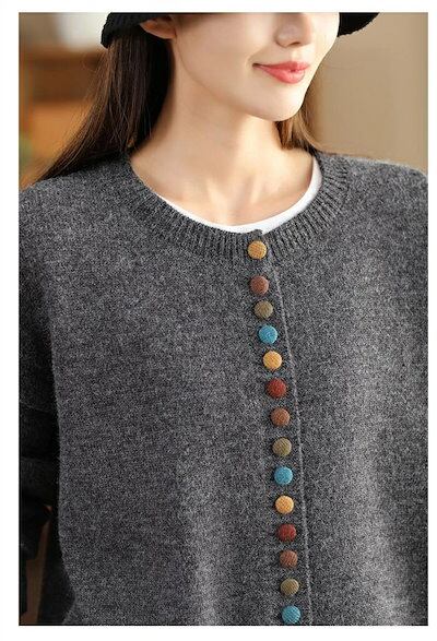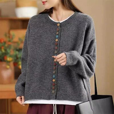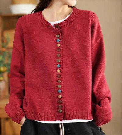 ニットカーディガン デザインのボタン レディース 春秋 長袖 ニット アウター 大きいサイズ ゆったり 前開き カーディガン トップス ゆるカーデ 羽織 上品 暖か 厚手 ふわふわ キレイめ ゆったり