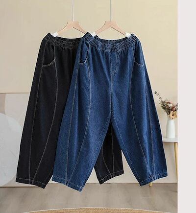 デニム ワイドパンツ レディース デニムパンツ 無地 ガウチョパンツ ジーンズ ゆったり ボトムス ジーパン バギーパンツ ウエストゴム 森ガール ズボン 体型カバー 美脚 カジュアル リラックス ブ