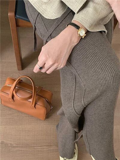 ワイドパンツ レディース 秋冬サイドスリット きれいめ ボトムス ロング丈 柔らか ウエストゴム ゆったり 通勤 イージー ニットセーター フリーサイズ 美脚 体型カバー 大人 カジュアル オフィス
