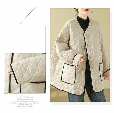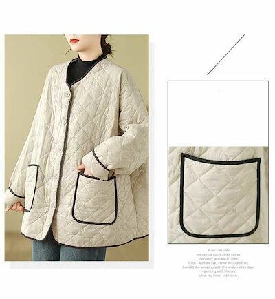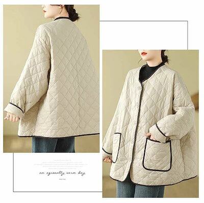 キルティング コート 中綿 レディース ジャケット アウター コート 羽織り 上着 ノーカラー 軽い ポケット付き 冬 暖かい 防寒 トップス ゆったり あったか ブルゾン 軽量 秋冬 シンプル カジ