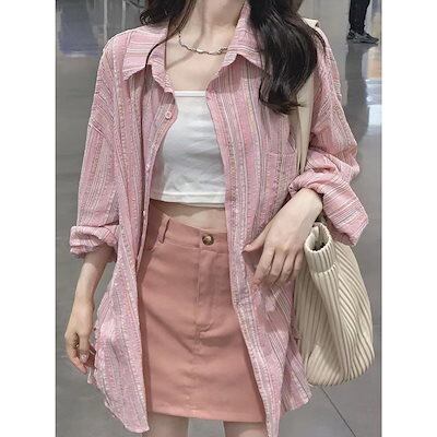 ブラウス夏の薄いセクションは緩いシャツのカーディガンのアウトウェアシャツ女性韓国語バージョンをストライプ