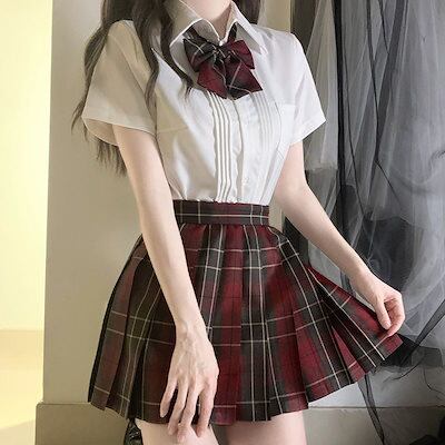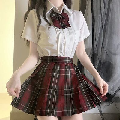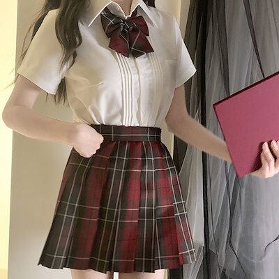 JKユニフォームシャツカレッジスタイルトップベーシックルーズペプラムチェック柄スカートセット夏
