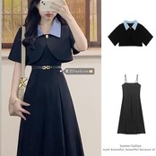 セットアップホルタードレス セット レディース 夏 スプライス 半袖 シャツ トップス ウエストマーク ロングスカート