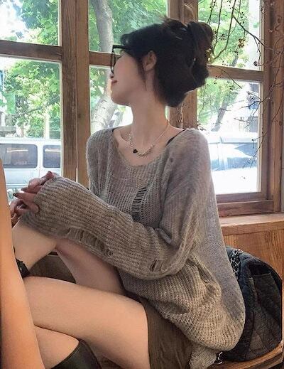 シースルートップス緩い壊れた穴中空ニット日焼け止めスモック女性の春と夏の外側の上部の薄い部分