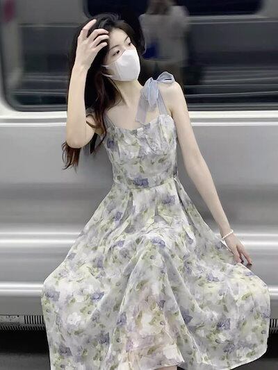 ヘビロテ!キャミワンピース花ホルタードレスサブデザインロング2024新しい夏の女性のドレス