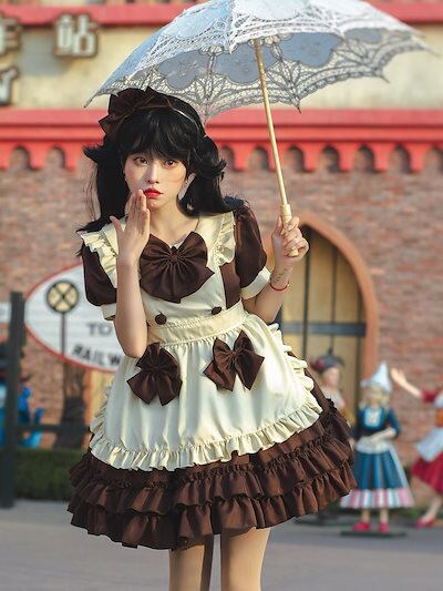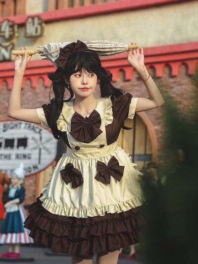 コスチュームカフェメイドドレス ウェイトレスドレス ロリータドレス ロリドレス メイドパフォーマンス コスチューム