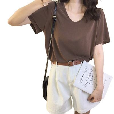 Tシャツ2024半袖レディースTシャツヤンキーVネックトップス女性新作夏薄手トップス