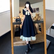 ワンピーススクエアネックワンピース女性の夏の新しい弓ウエスト細いスカートのシニア感覚