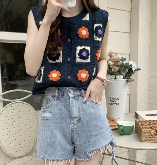 2022春夏新作 レディース 女 袖なし ニット トップス Tシャツ インナー キャミソール タンクトップ 3色