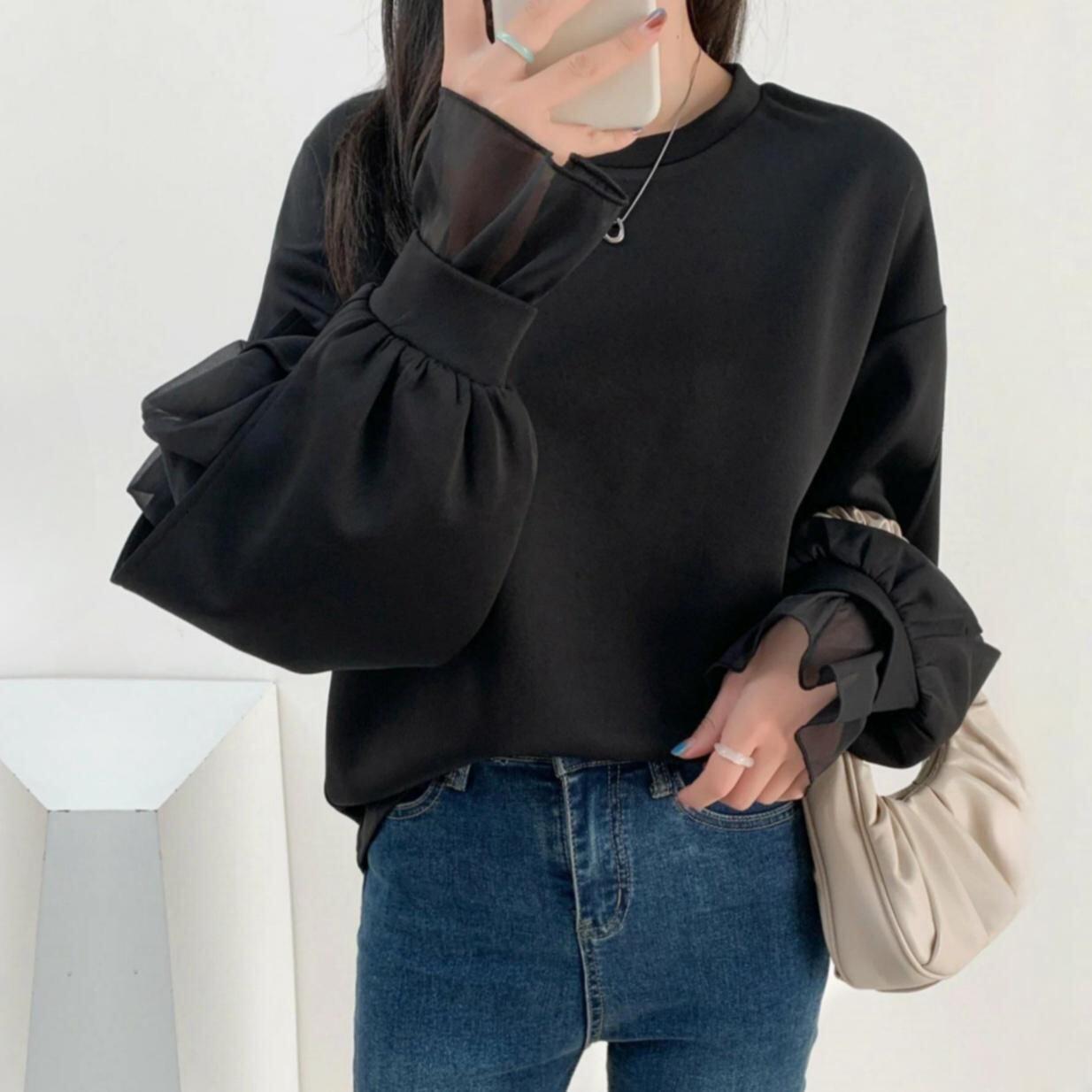 初回送料無料 春新作レディースファッション カジュアル オシャレ 長袖 フェイク2枚 トップス
