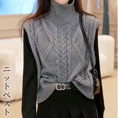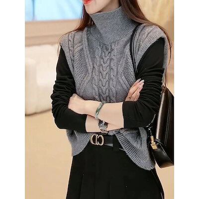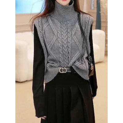 人気なリブニット ベーシックニットハイネックニットベスト 秋冬 韓国ファッション カシミヤタッチウォームニットベスト怠惰な風 セーター レディース 重ね着 ジャケット アウター