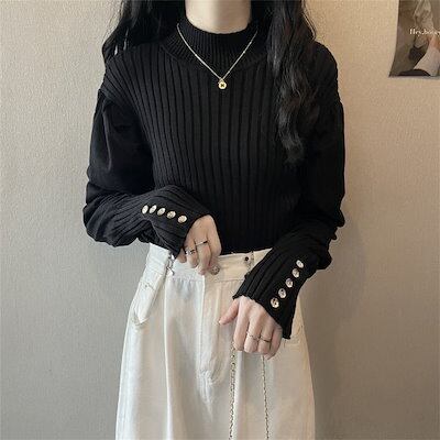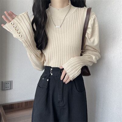 人気なリブニット 秋冬新作 気質 ニットインナー ランタン袖 ニットセーター レディース 大人 エレガント スリミング着痩せアンダーウェア ベーシックニットカシミヤタッチ トップス