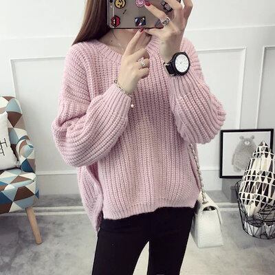 人気なリブニット ベーシックニット 冬 セーター 韓国ファッション ゆったりショート ニットトップス 百掛け ニット レディース 通勤カジュアル 無地 セーターカシミヤタッチ