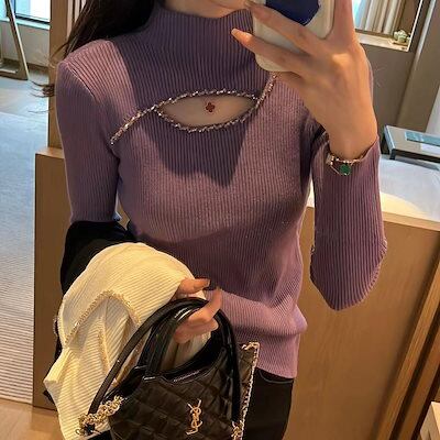 人気なリブニット ベーシックニット カシミヤタッチ 秋冬 ニットセーター レディース スリミング百掛け セータートップス ハイネックセーター長袖トップス