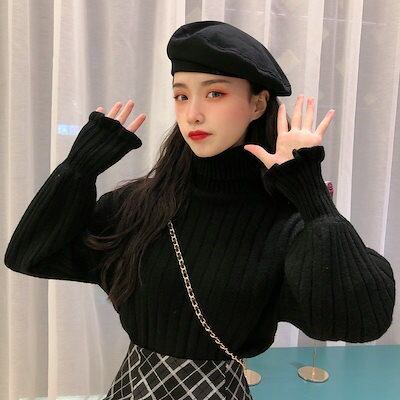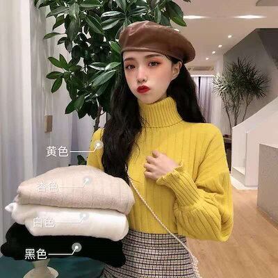 人気なリブニット ベーシックニット カシミヤタッチ 秋冬ジャケット秋冬ニットセーターレディースパフスリーブ上着可愛い159裹起毛 長袖トップス